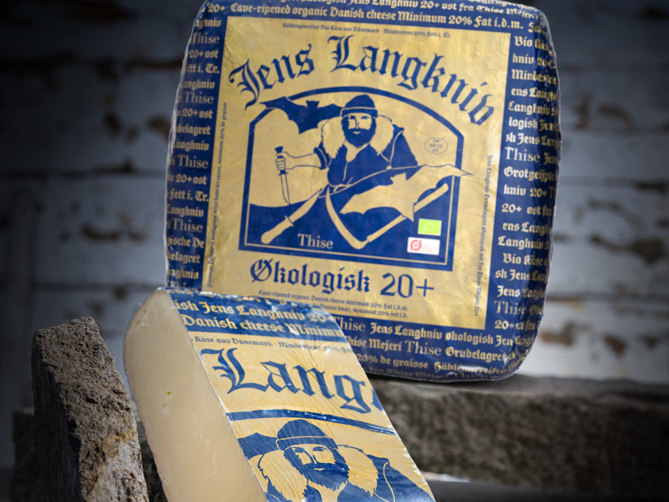Der Bio Jens Langkniv ist ein höhlengereifter halbfester Schnittkäse aus Dänemark. Er wird in der Thise Mejeri hergestellt, einer der ersten Biomolkereien Europas. Auf seinem Etikett ist der dänische Volksheld abgebildet, dem er seinen Namen verdankt.