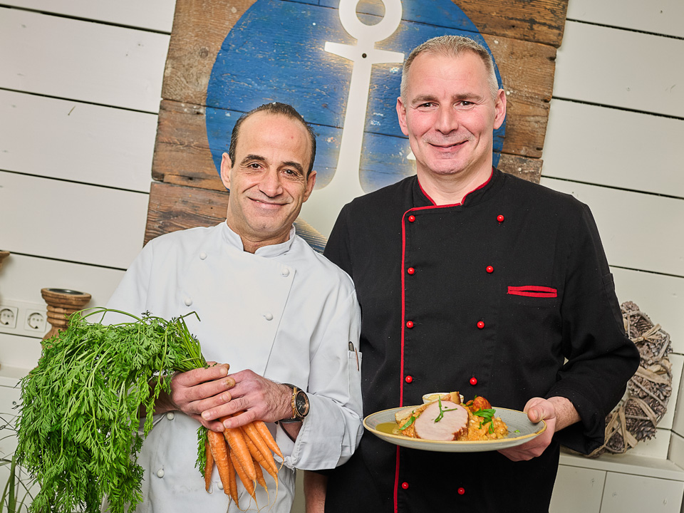 „Aufgeben ist keine Option“, war man sich im Hotel & Restaurant Ostsee-Anker einig, als in Langballig an der Ostsee nach der großen Sturmflut im Oktober 2023 alles unter Wasser und nichts mehr an seinem Platz stand. Mit Tatkraft, Enthusiasmus und viel Liebe zum Detail erweckte das Team den Ort wieder zum Leben. Dass man aus einfachen Dingen viel machen kann, wenn die Leidenschaft mitkocht, weiß auch Küchenchef Björn Schapinski. „Hier arbeitet jeder mit Herzblut“, sagt er. Zusammen mit Koch Yasser Salih liefert er mit seinem Steckrübenmus das beste Beispiel dafür, wie man aus einem einst aus der Not geborenen Essen ein köstliches Gericht zaubert.
