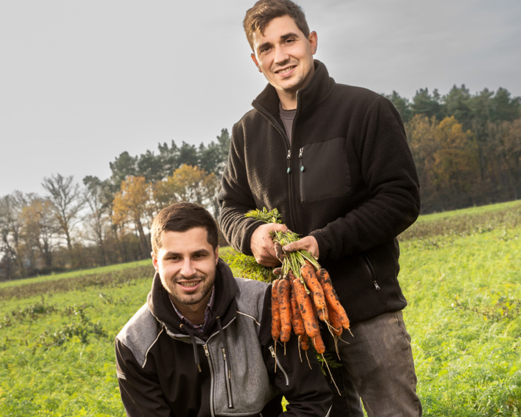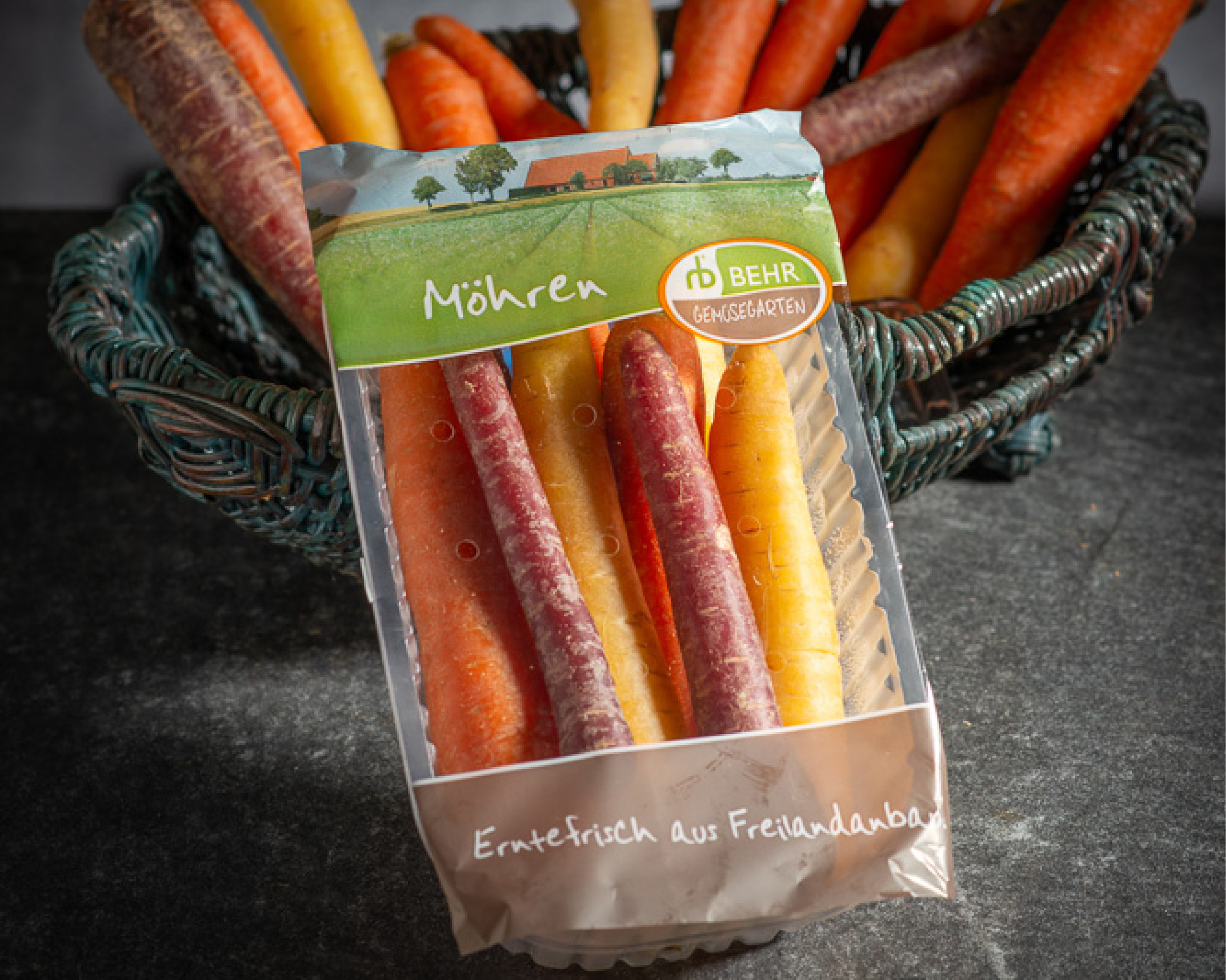 Wer auf den Hof des Familienbetriebs Axel Meyer in Vögelsen bei Lüneburg kommt, riecht das Gemüse, bevor er es sieht. Ein frisches Möhrenaroma liegt in der Luft und macht Appetit auf mehr. Es weht aus einer der großen Lagerhallen herüber, in der das Gemüse gewaschen, sortiert und verpackt wird. Hier produzieren die Brüder Dennis und Niklas Meyer mit ihrem Vater Axel im Auftrag der Behr AG verschiedenste Möhrenvarianten mit jeder Menge Erfahrung und Weitsicht. Damit Möhren möglichst gerade wachsen, brauchen sie lockere, steinfreie Böden. Die hier eher sandigen Böden eignen sich ideal, doch ist nicht jede Fläche gleich beschaffen. Familie Meyer baut Gemüse auf insgesamt 500 Hektar an. Wo einmal stark zehrende Möhren herangewachsen sind, brauchen die Böden fünf Jahre und verschiedene Fruchtfolgen, um sich zu erholen. Über den Flächentausch mit anderen Landwirten oder Pacht sichert sich die Familie ausreichende Anbauflächen in der Nähe.