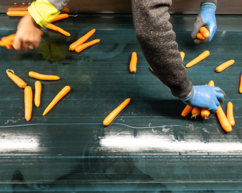 „Es gibt aber auch Sorten, die bereits nach 110 Tagen perfekt sind“, erzählt Dennis Meyer. Andere können 150 Tage in der Erde bleiben. Ausgesät wird bis spätestens Mitte Juli. Die Ernte läuft Anfang des Folgejahres aus, wenn die ersten Saatkörner schon wieder in die Erde kommen. „Wir sind ein Ganzjahresbetrieb, wir haben keine Winterpause“, sagt Dennis Meyer. Im Winter übersteht das Gemüse unter Stroh oder Vlies auch leichten Bodenfrost. Bleibt es nach Ende der Wachstumsphase noch in der Erde, verwächst sich die Spitze der Möhre übrigens rund. Fachleute nennen das „stumpf wachsen“. Gut 60 Personen beschäftigt der Familienbetrieb rund ums Jahr. Mühsame Handarbeit gibt es auf dem Feld nur noch in Ausnahmefällen. Die Ernte erfolgt mit speziellen Maschinen. Nach dem Transport zum Hof werden zuerst automatisch grober Sand, Steine und welkes Grün abgeschüttelt und die Möhren in einer Trommel gewaschen und gebürstet. Über Transportbänder geht’s dann in die Sortierung und Verpackung.