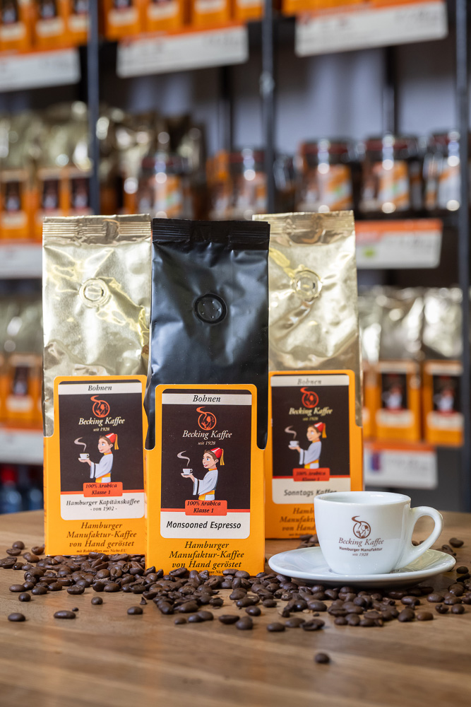 Der Inhaber von Becking macht in Seminaren und Verkostungen erlebbar, was guten Kaffee von Industriekaffee unterscheidet. Dann wird geschlürft und durch die Zähne gezogen, geschnuppert und genossen. Das Hamburger Unternehmen hat 52 Kaffeerezepturen im Sortiment. Beliebt sind etwa der Kapitänskaffee mit unterschiedlichen Bohnen und einem großen Spektrum an Aromen oder auch der weiche und karamellige Monsooned Espresso. Tatsächlich schmeckt auch der Ungeübte ziemlich schnell den Unterschied heraus. Diese Kaffees haben Charakter.