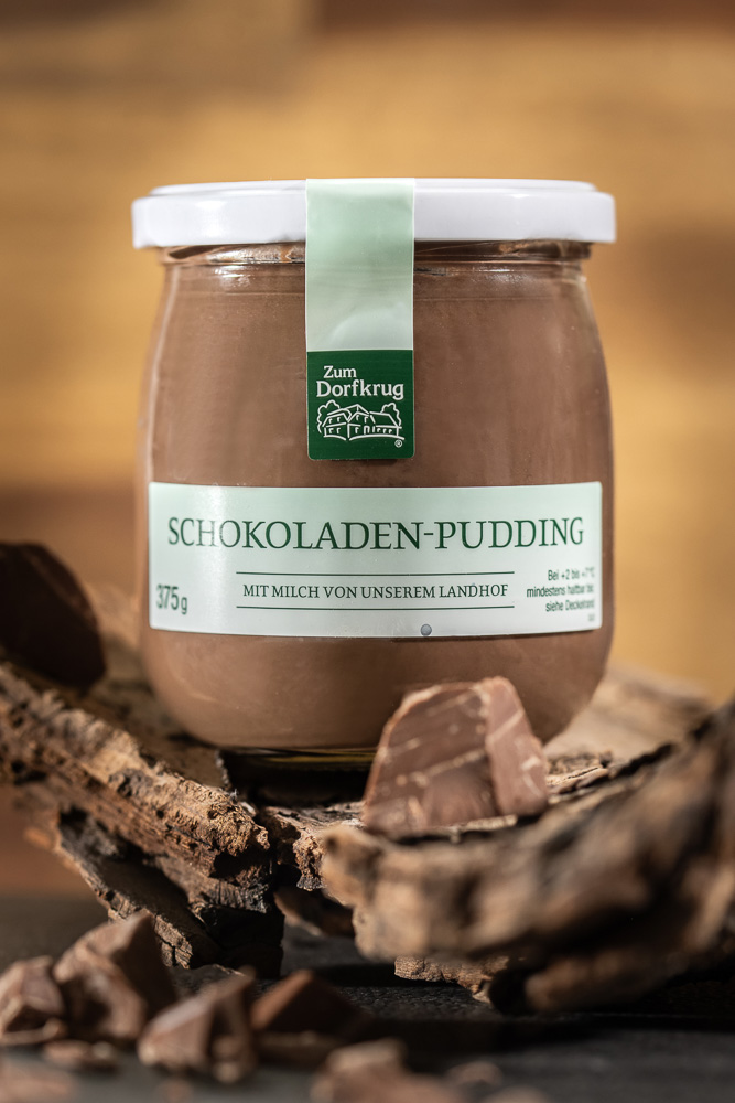 Wer seinen Pudding mit regional produzierter Milch genießen möchte, ist bei den Desserts im Glas des Familienunternehmens „Zum Dorfkrug“ goldrichtig. Die 120 Kühe, die die Milch für den cremigen Vanille-, Schokoladen-, Haselnuss- oder Karamellpudding sowie den Milchreis liefern, leben keine zwei Kilometer vom Produktionsstandort auf dem familieneigenen Hof im niedersächsischen Kreis Harburg bei Hamburg. Die meisten von ihnen zählen zur Rasse Angler Rotvieh. „Sie geben etwas weniger, dafür aber eine fettreichere Milch als schwarz-bunte Kühe, deshalb ist unser Pudding so cremig“, sagt Helga Neblich. Sie ist Promotionfachfrau und führt Hierleben mit ihrem Kollegen Manfred Kron sowie dem Marketingleiter Matthias Kühn über den Landhof und durch die Produktion.