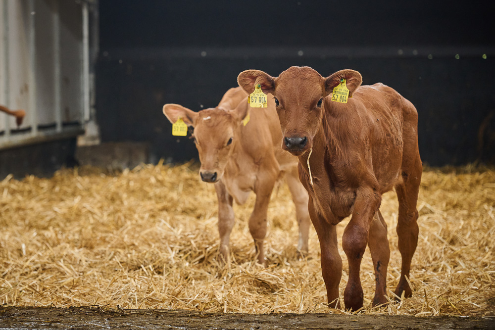 „Die Kälber entwickeln sich viel besser. Davon profitieren sie ein Leben lang“, sagt der 27-Jährige. Vor Kurzem hat er den Betrieb von seinem Vater Johannes übernommen, der sich über den Neubau mindestens so freut wie sein Sohn: „Natürlich steckt hier eine riesige Menge Geld drin. Aber man muss auch Werte wie Freude im Umgang mit den Tieren und Zufriedenheit einrechnen.“ In den großen Strohboxen kümmert sich jeweils eine Kuh um zwei bis vier Kälber, die gerade ein paar Tage alt sind. Hier bleibt die kleine Familie etwa zwei Wochen zusammen. „Diese Phase ist sehr wichtig für die Bindung“, erläutert Janosch Raymann. Die Kuh gibt genügend Milch, um die Kleinen satt zu bekommen. Gleichzeitig beginnt sie bereits, ihnen rund um die Uhr das ABC des Sozialverhaltens beizubringen. Später geht’s in größere Gruppen unter Dach und im Freien. Nach drei Monaten gelinge das Absetzen stressfrei für alle, so Hauke Tams.