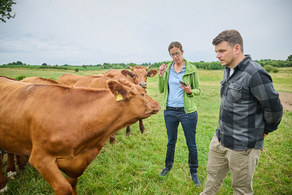 Üblicherweise werden auf Milchviehbetrieben nur die Kälber aufgezogen, die als künftige Milchkühe benötigt werden, während die überzähligen schnellstmöglich verkauft werden. Die Bauerngemeinschaft hat sich aus ethischen Gründen für einen anderen Weg entschieden. Das Ziel: In fünf Jahren sollen auf den rund 30 Mitgliedshöfen alle Kälber aufgezogen werden. Dadurch sind mehr Tiere zu versorgen, und es wird mehr Platz im Stall sowie auf der Weide benötigt. „Wir sind der Überzeugung, dass es in der Nutztierhaltung um Verantwortung für alle Tiere geht, von der Geburt bis zur Schlachtung“, sagt Janosch Raymann. Auch Hauke Tams findet es wichtig, diese Herausforderung anzupacken. Er zieht bereits jetzt alle bei ihm geborenen Kälber selbst auf. Auf seinen Weiden führen die Jungrinder ein gutes Leben und tragen gleichzeitig zum Erhalt von ökologisch wertvollen extensiven Weideflächen bei.