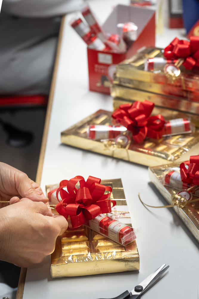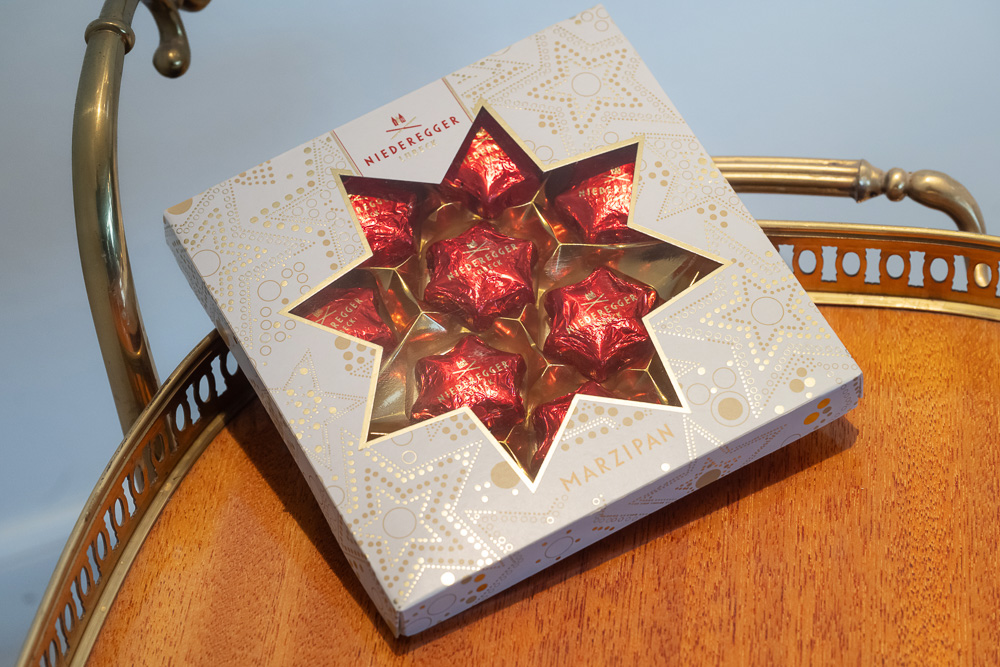 Die kleinen Marzipanrechtecke, mit dunkler Schokolade überzogen und eingewickelt in rotes Papier, sind weltbekannt. Der Klassiker aus dem Hause Niederegger wird in mehr als 40 Länder verkauft, bis nach Neuseeland und Costa Rica. Längst sind andere Produkte hinzugekommen: fruchtige und nussige Geschmacksrichtungen in Form von Torten und Herzen, vegane Schokoladen, Pralinen, Nugat und weihnachtliche Sterne mit Marc de Champagne und Mousse au Chocolat. Es gibt Adventskalender, Baumschmuck, Baumkuchen, Stollen und Marzipan in edlen Geschenkverpackungen. Auch Kaffee, Kakao und Tee gehören heute zur Produktvielfalt. Bei Niederegger finden einfach alle Leckerschmecker ihren Favoriten. „Wir haben etwa 300 Produkte im Sortiment. Allein bei den Marzipanklassikern gibt es mehr als 25 Sorten“, erzählt Senior Produktmanagerin Nadine Petersen. Gemeinsam mit ihren Kollegen feilt sie am Sortiment von Niederegger, sondiert Trends und kreiert Ideen. „Zu den Neuheiten der aktuellen Saison zählen neben unseren festlichen Sternenpräsentpackungen die cremig gefüllten Torten. Die mit Schokolade überzogenen Marzipantorten sind eine Hommage an unsere beliebten Caféhaustorten.“