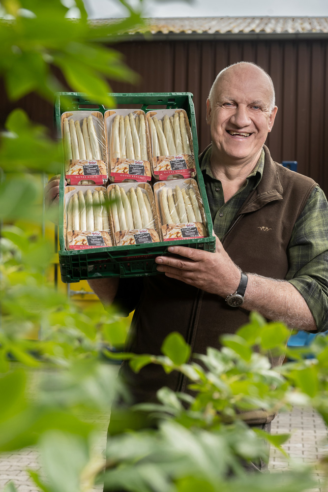 Schon mal von Prius, Gijnlim oder Backlim gehört? So heißen die Spargelsorten, die auf den Feldern des Spargelhofs Winkelmann wachsen. „Seit 1954 hat die Familie den Spargel im Blick“, erzählt Friedrich Winkelmann. Seine Mutter brachte damals Spargelpflanzen für einen halben Morgen als „Mitgift“ in die Ehe ein. „Für meine Eltern war es damals nur ein Nebenerwerb, doch mein Bruder und ich wollten mehr.“ Heute ist Friedrich Winkelmann Herr über 600 Hektar Spargelanbaufläche. Die Hälfte davon liegt im Westfälischen, die andere in Niedersachsen. Der Spargelbauer freut sich, dass die dritte Generation im Betrieb Fuß gefasst hat: Sohn Markus ist für die Direktvermarktung verantwortlich, Tochter Nadine leitet als promovierte Biologin das Qualitätsmanagement.
